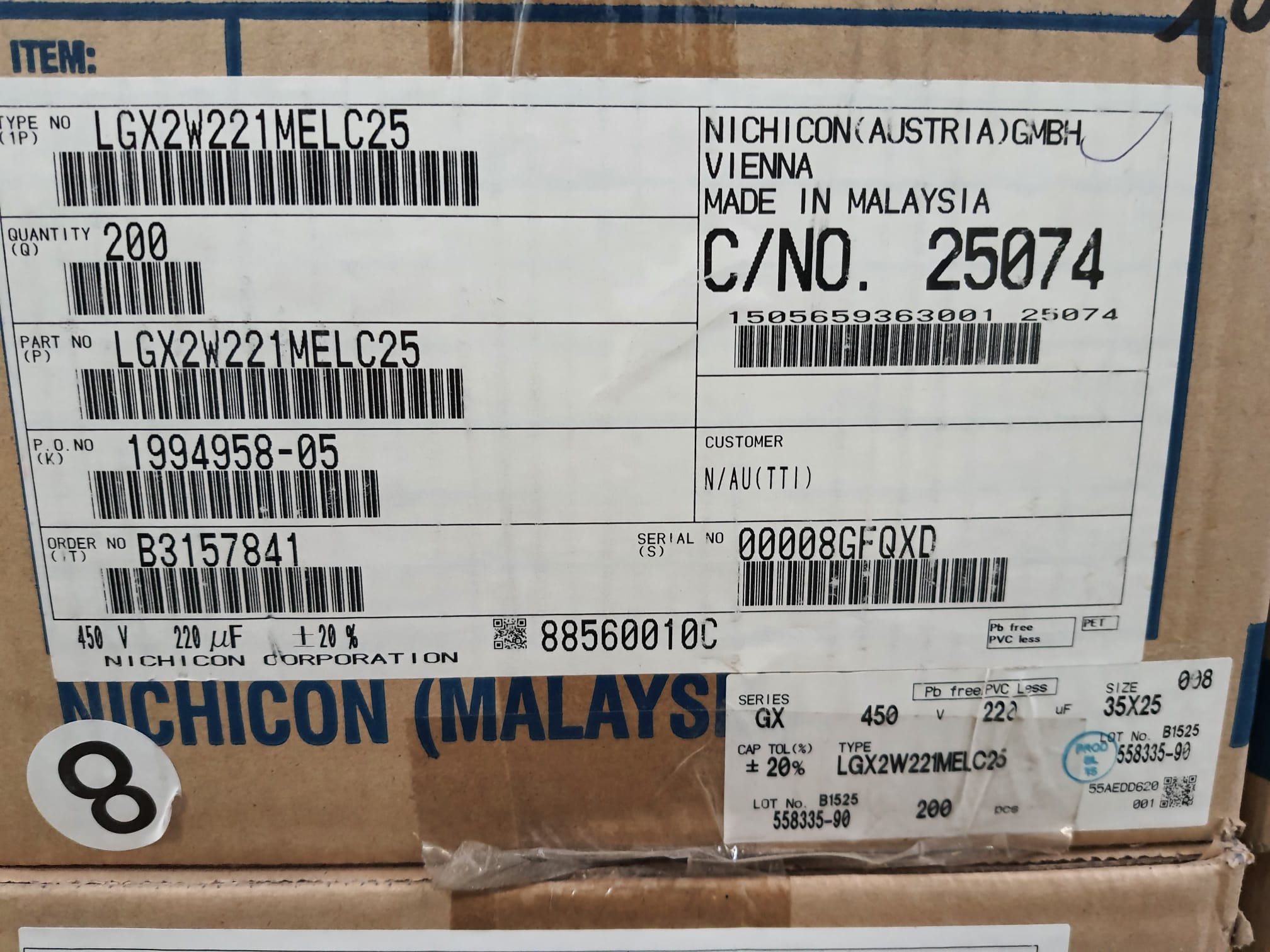 Part number: LGX2W221MELC25